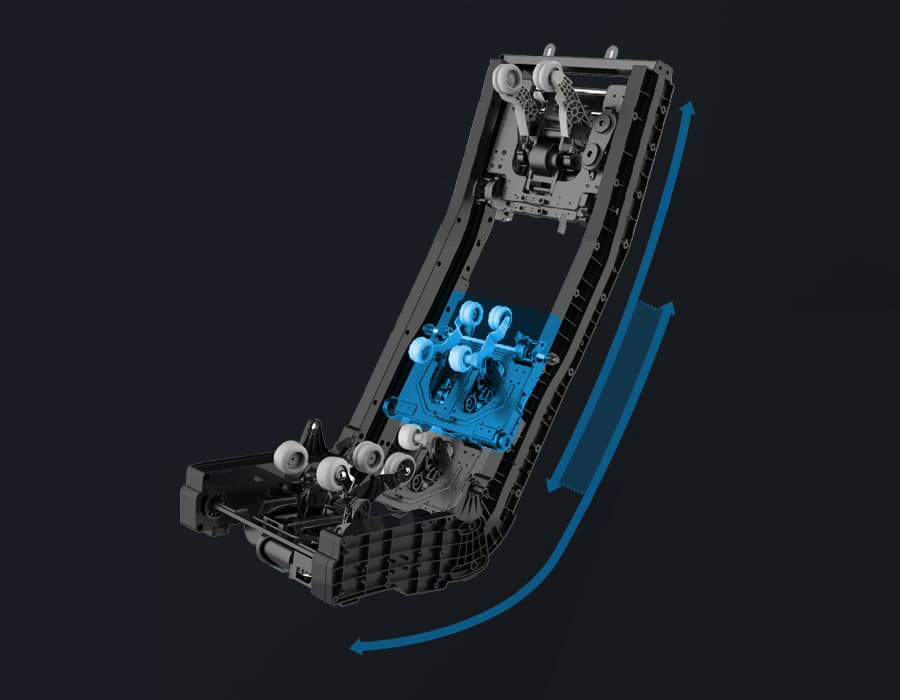 Der Massagesessel deluxe PRIME benötigt nur 5 Zentimeter Entfernung von der Rückenwand: Er gleitet nach vorne und kippt durch zwei synchronisierte Mechanismen nach hinten, um Platz zu sparen und Ihnen eine völlig entspannende Position zu ermöglichen. Sein elegantes Design mit Gelenken und Volumenspielen macht PRIME zu einem Blickfang in jedem Raum.