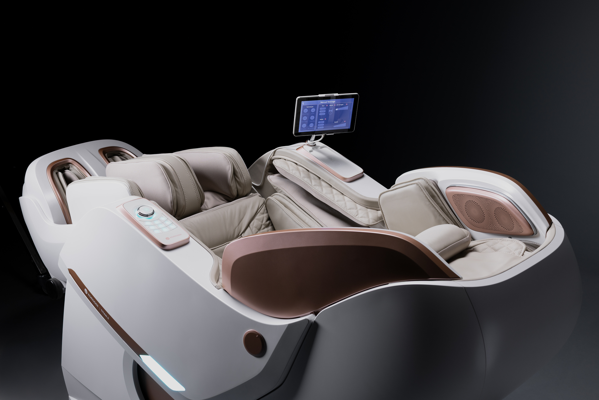 Der TITAN II Massagesessel ist mit einem 8-Zoll-Touchscreen-Tablet ausgestattet, das Ihnen die vollständige Kontrolle über jede Facette Ihrer Massage ermöglicht. Passen Sie die Massage ganz nach Ihren individuellen Vorlieben und Bedürfnissen an und genießen Sie ein Gefühl von Verwöhnung und Wohlbefinden. Der TITAN II bietet eine Massage, die selbst professionelle Masseure beeindrucken würde.